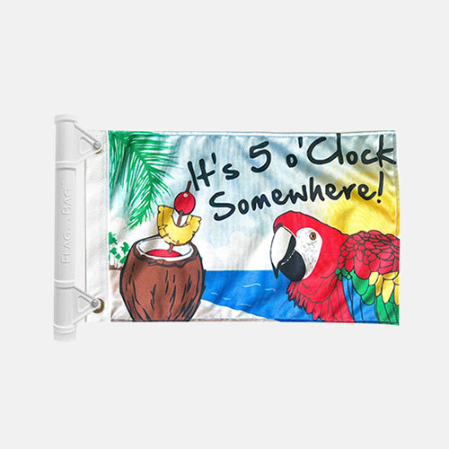 5 O'Clock Somewhere Boat Flag with Boat Flag Holder | Funny Boat Flags