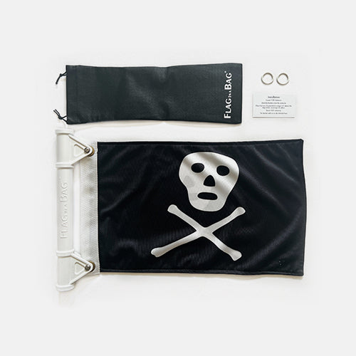 Every kit comes with your choice of black or white 13" flag holder, and your choice of double sided sublimated flag. All starter kits also include the bag, stainless steel screws, install instructions, and UV resistant O-rings for securing onto your VHF antenna.